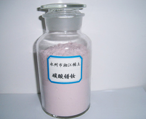 淺綠色粉末,不溶于水,其八水化合物熱至100℃失去六分子結(jié)晶水。溶于酸生成相應(yīng)的鐠鹽溶液,并放出二氧化碳。