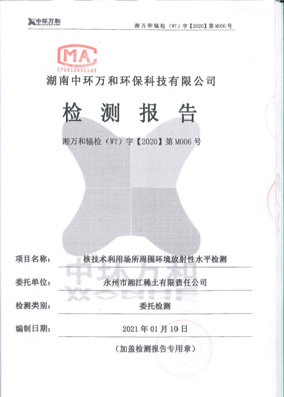 永州市湘江稀土有限責(zé)任公司放射性水平檢測(cè)報(bào)告