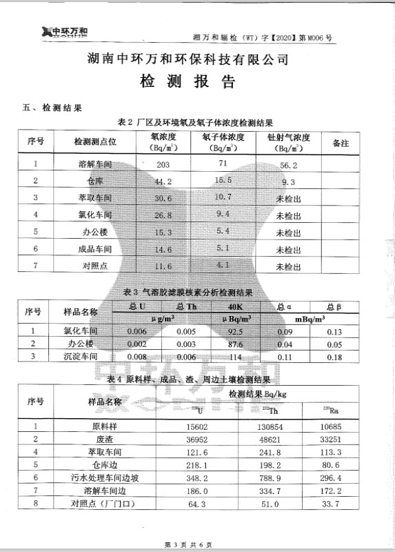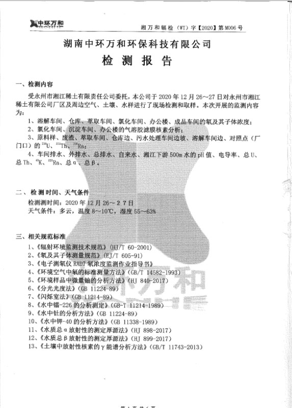 永州市湘江稀土有限責(zé)任公司檢測(cè)報(bào)告